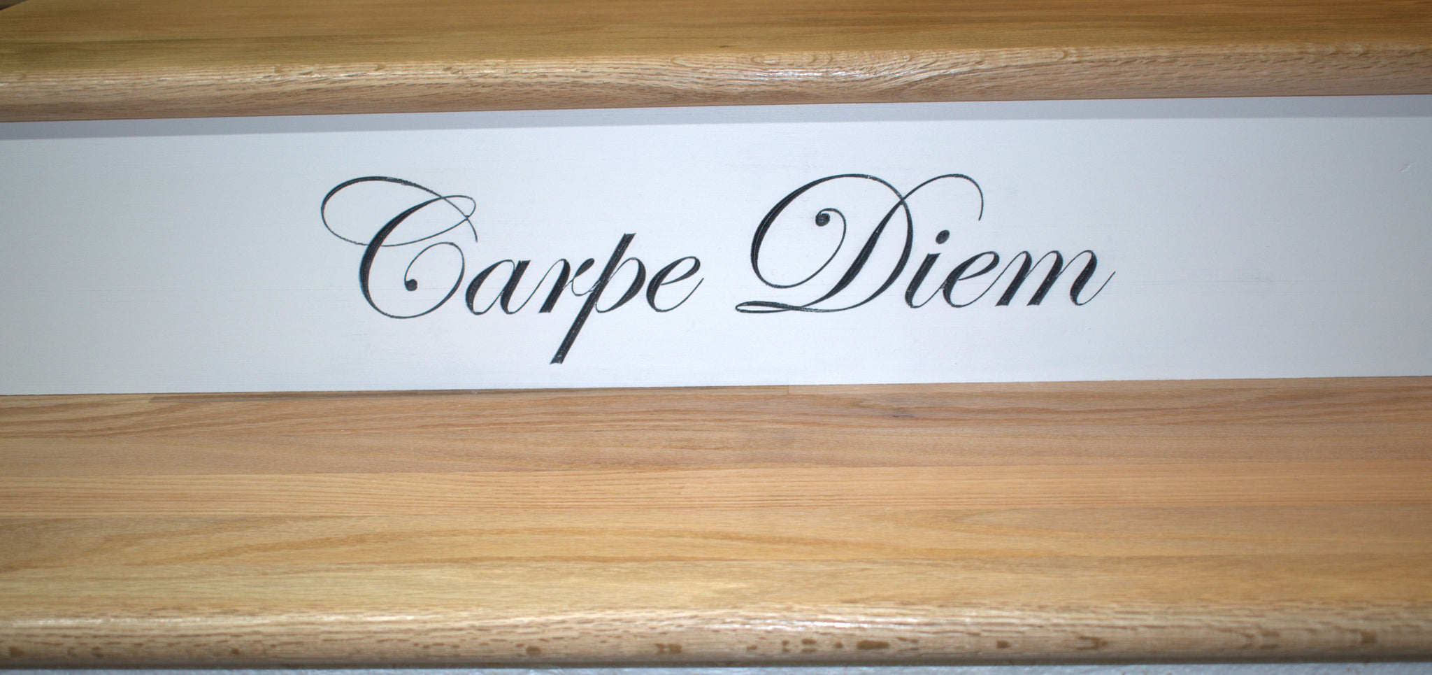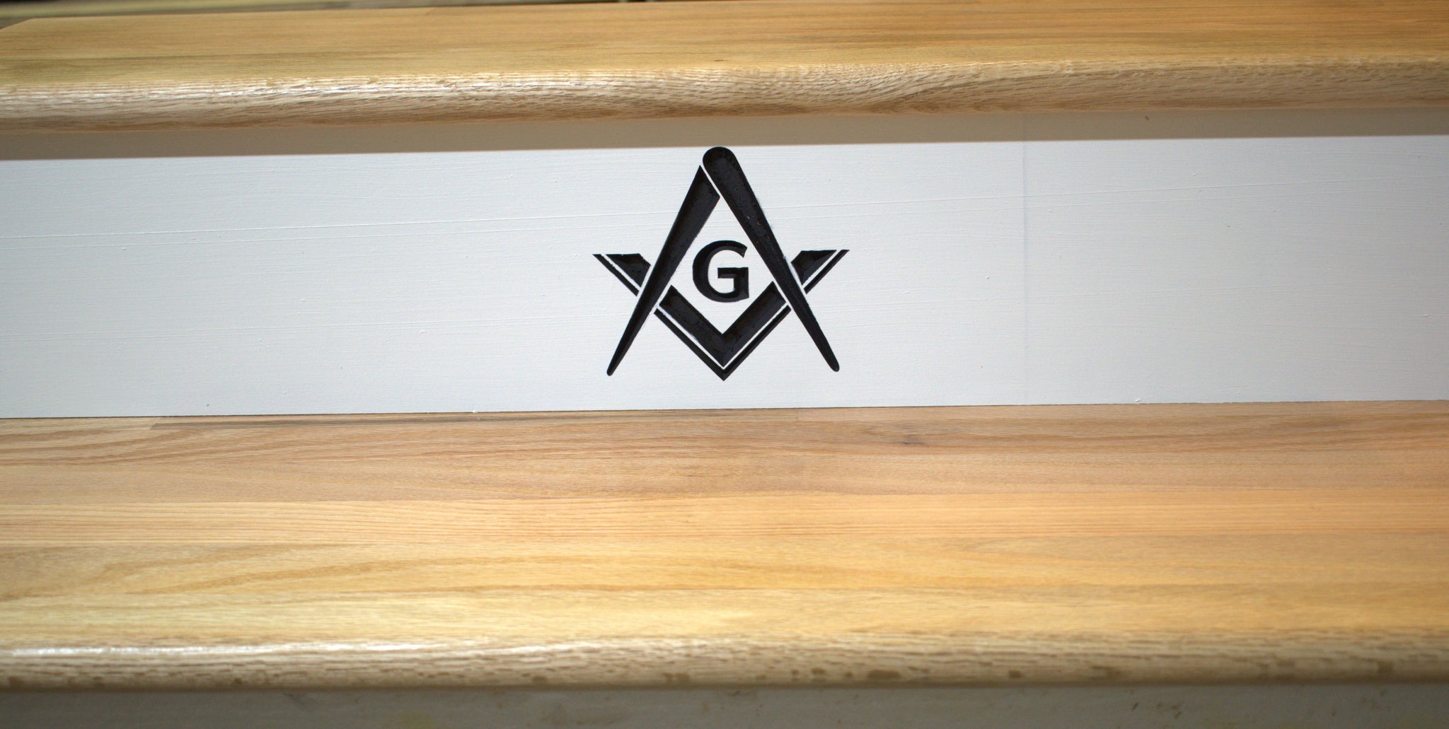 Custom stair risers with your graphics engraved and painted on 8 inch wide and 48 inches long. Graphics or text are centered within the Poplar painted riser for final trimming onsite by the installer, (most risers are 7.0 - 7.5 inches tall)